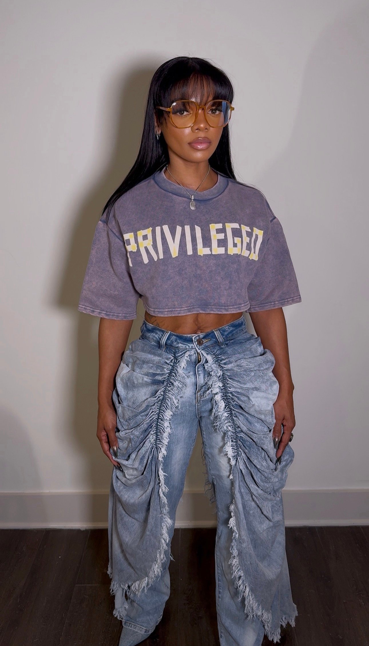 Boxy Cropped Sweatshirt Graphic Print Slightly Oversized/Relaxed Fit Drop Shoulder Mineral Washed Size up for more relaxed fit Non-stretch Model Size S